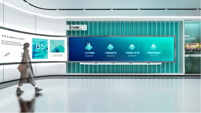在设计层面,企业数字化展厅需遵循 “内容为王、体验至上” 的原则,一般需重点关注三大核心要求。其一,内容模块化设计是基础,需将展示内容拆解为主题模板、产品素材、交互逻辑等独立模块,确保各模块可自由组合且切换时不出现卡顿;其二,空间兼容性规划需提前考量,物理空间布局应预留足够的硬件接口与信号传输通道,避免因设备连接问题影响换馆效率;其三,用户体验连贯性需重点保障,换馆过程中应通过过渡动画、音效提示等设计,减少场景切换对观众体验的干扰,同时确保不同主题场景下的品牌视觉元素(如 LOGO、主色调)保持统一,避免观众产生认知混乱。此外,整体设计还需与企业战略高度契合,科技型企业可侧重技术研发成果的可视化展示,而消费品牌则需强化产品体验场景,通过 “一键换馆” 实现从品牌故事到产品体验的无缝衔接。